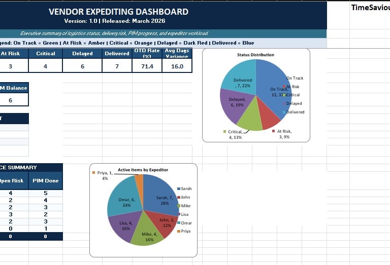 • Vendor Expediting Tracker